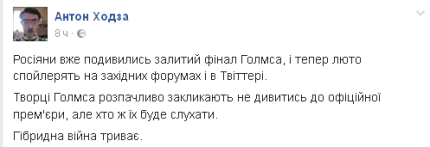 У мережі з'явилася фінальна серія четвертого сезону британського телесеріалу "Шерлок", прем'єра якого повинна відбутися в ніч на 16 січня, соцмережі звинуватили у витоку росіян.