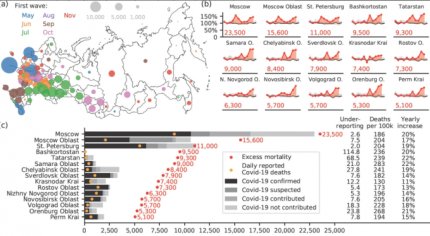 Кобак також оцінив летальність від коронавіруса по регіонах Росії. Абсолютним лідером за смертями від коронавіруса в 2020 році, за його підрахунками, стала Москва, де зафіксована надлишкова смертність за час епідемії 23,5 тисячі осіб. У Самарській області померло 283 людини з кожних 100 тисяч населення, в Оренбурзькій області - 268 на 100 тисяч, в Татарстані - 239 на 100 тисяч, в Башкортостані - 236 на 100 тисяч. Причому ці регіони на протязі всього 2020 рік повідомляли про невелику кількість смертей від коронавіруса. Зокрема, в Башкортостані кількість надлишкових смертей і офіційних жертв ковіда відрізняється в 114 разів.