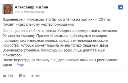 У своїх "прогнозах" Жилін запевняв, ніби Київ зробить Вороненкова і його дружину Марію Максакову широко відомими, а після цього ліквідує, щоб звалити провину на Кремль.