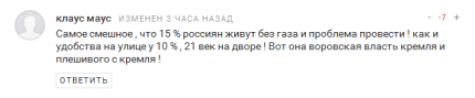 Тем временем, пользователи соцсетей напомнили о россиянах, которые не имеют газа и 25% российских семей, не имеющих даже теплого туалета.