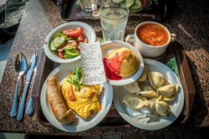 Может это немножко богохульно, выставлять фото, сделанное в самой популярной сети ресторанов «Пузатая хата». Я делаю это, чтобы подчеркнуть свою мысль: даже если Вы путешествуете с небольшим бюджетом, в Украине Вы будете питаться, как королевская особа. Потратив всего 158,50 грн. (6,00 долларов) Вы можете взять себе: вареники с мясом, свинину, запеченную с грибами и сыром, домашнюю колбасу, борщ, овощной салат, творожно-малиновый десерт и лимонад. Представьте себе, что здесь можно себе позволить на 15,00 долларов!