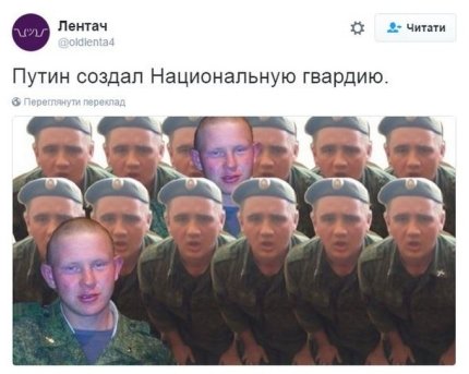 Пользователи соцсети посмеялись над решением президента России Владимира Путина создать из Внутренних войск Министерства внутренних дел России Национальную гвардию России.