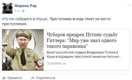 "Урку тянет на место преступления: #Путин прилетит в украденный #Крым. Пожелаем тварюке, чтобы это было последная его поездка на нашу землю!" - пишет