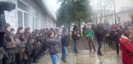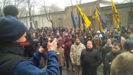 Сообщается, что участники акции от стадиона "Динамо" выдвинулись колонной к СИЗО СБУ. Под изолятором активисты выкрикивают лозунг: «Один за всех и все за одного!».