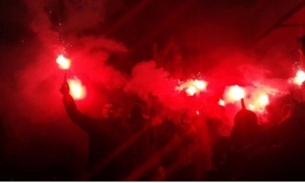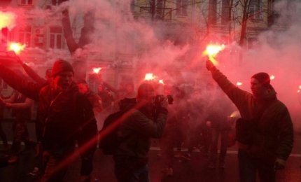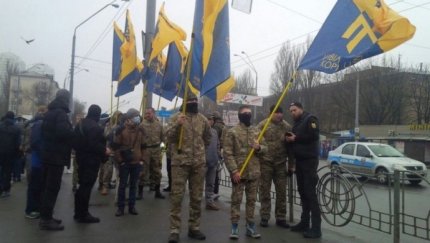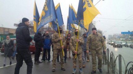 Активисты Гражданского Корпуса "Азов" снова жгли файеры возле следственного изолятора СБУ в Киеве в поддержку главы корпуса "Азов-Крым" Станислава Краснова, подозреваемого в сотрудничестве с ФСБ и передаче им списков полка МВД Украины "Азов".