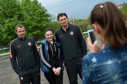 15:15. традиционно в день матча футболисты "Шахтера" совершили прогулку, фотографируясь с желающими (фото - ФК "Шахтер")