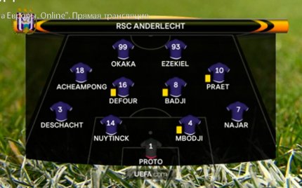 Андерлехт: 1. Прото (к), 7. Нахар, 4. Мбоджи, 14. Нейтинк (26. Силла, 78'), 3. Дешахт, 8. Баджи (31. Тилеманс, 71'), 16. Дефур, 10. Прат, 18. Ашампонг, 93. Эзекиль (27. Хассан Трезеге, 71'), 99. Окака