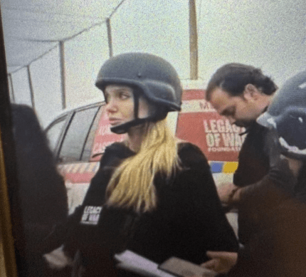 Впоследствии была опубликована фотография, на которой известная актриса в бронежилете и защитной каске стоит прямо в антидроновом тоннеле на юге страны.