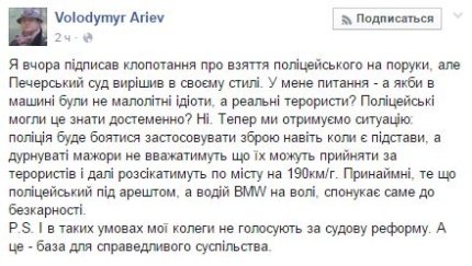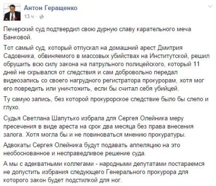 Вечером в четверг, 18 февраля, Печерский районный суд Киева арестовал полицейского Сергея Олейника, участвовавшего в погоне 7 февраля и подозреваемого в убийстве пассажира BMW.