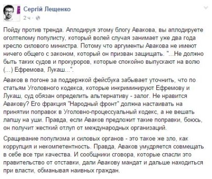 Министр внутренних дел Арсен Аваков прокомментировал задержание полицейского, назвав решение Печерского суда «упоительной расправой».