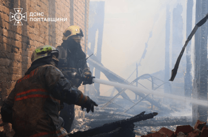 Как сообщают спасатели, в результате вражеской атаки вспыхнул масштабный пожар на площади 700 м.кв в двухэтажном здании.