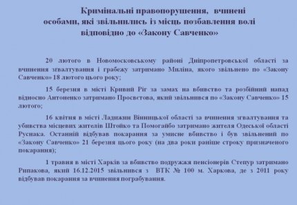 Как сообщал ONLINE.UA, из тех заключенных украинских тюрем, которые были освобождены по так называемому "Закону Савченко", тяжкие и особо тяжкие преступления повторно совершили 908 человек.