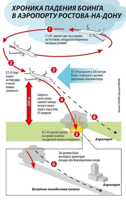 Схема составлена с учетом погодных условий, и отображает время и высоту, на которой самолёт встретился с ураганным порывом ветра в 3:49 19 марта (2:49 по киевскому времени), потерял скорость и начал падать, после чего рухнул на кромку взлётно-посадочной полосы и взорвался.