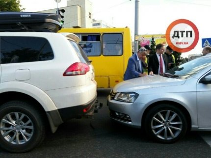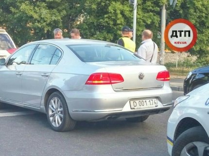 В среду, 6 июля, в Киеве на Севастопольской площади автомобиль посольства России протаранил внедорожник.