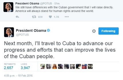 «У нас по-прежнему есть разногласия с кубинским правительством, вопрос о которых я подниму непосредственно. Америка всегда будет выступать за права человека во всем мире. В следующем месяце, я поеду на Кубу, чтобы продвинуть наш прогресс и усилия, которые могут улучшить жизнь кубинского народа».