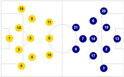 Запасные: 1. Мойя, 18. Гамес, 8. Краневиттер, 23. Вьетто