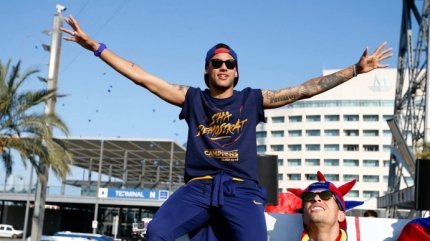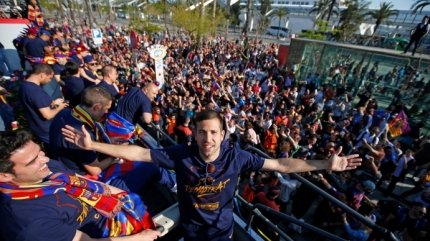 Как сообщает ONLINE.UA, футболисты "Барселоны" проехались улицами каталонской столицы с трофеем победителей чемпионата Испании.