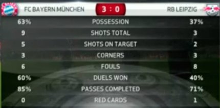 21:50. ну и статистика первого тайма красноречиво говорит о преимуществе Баварской машины
