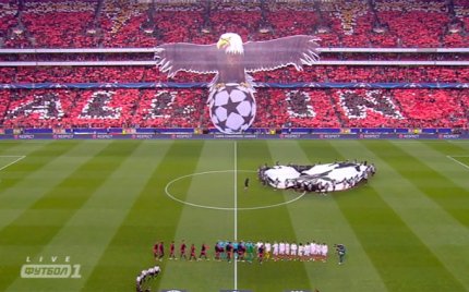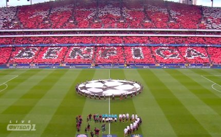 21:44. яркое модульное шоу подготовили фанаты "Бенфики". Особо заслуживает внимание "орел"