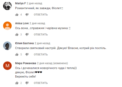 Украинцы и поклонники "Фиолета" назвали новогодний терк группы настоящей бомбой, очень праздничной и нежной.