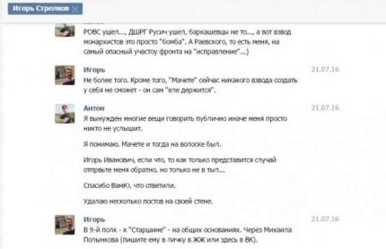 «Я под микроскопом со стороны моих бывших коллег. Стоит попробовать создать что-либо подобное – и меня тут же обвинят в создании НВФ», - пишет Стрелков-Гиркин в ответ на реплику Раевского о том, что в случае создания Стрелковым-Гиркиным «взвода монархистов», он будет первым, кто пойдет к нему служить.