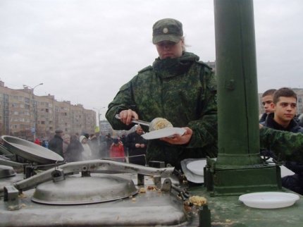 Также блогер добавил, что кормежка велась «из проржавевшей "полевой кухни", и занимались ею «одетые и оснащенные отнюдь не по-поварски "освободители".