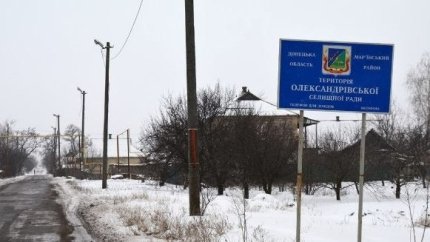 Сотрудники миссии ОБСЕ во время посещения оккупированного боевиками ДНР поселка Александровка Донецкой области обратили внимание на вывески на украинском языке.