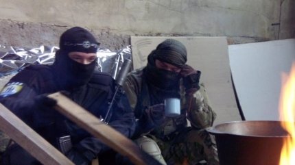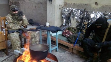 «Исламисты» оборудовали свою "позицию" в одном из цехов; как на выставке, они окружили себя оружием, флагами ИГИЛ и "Азова", и начали фотографироваться, прикрывая лицо платками. Спектакль продолжился в соседних зданиях под возгласы "Аллаху акбар!" и выстрелы в сторону частного сектора и террикона.