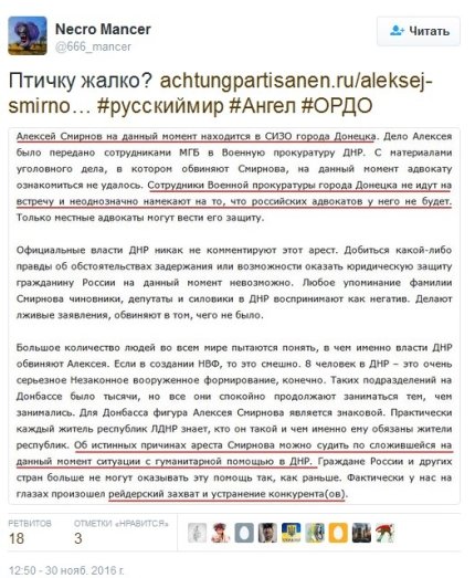 «Любое упоминание фамилии Смирнова «чиновники», «депутаты» и «силовики» в ДНР воспринимают как негатив. Делают лживые заявления, обвиняют в том, чего не было», - отмечается в статье.