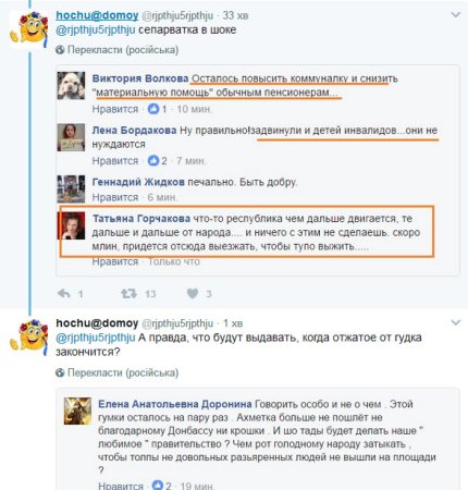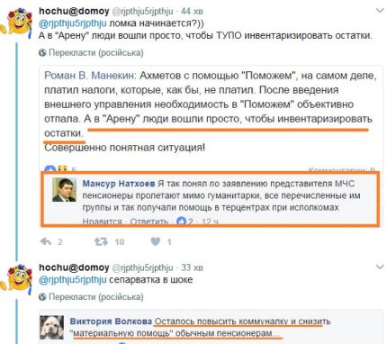 "Хроники тупых отжимов и идиотизма в ДНР или жизнь становится лучше и веселее! Вкратце: Гумштаб "Поможем" выдавал помощь: - матерям - одиночкам; - всем типам пенсионеров; - у кого есть дети до 3-х лет. Теперь это не так. Скажем спасибо любимым руководителям и их советникам в ДНР! Ура!", - написал Болотин на своей странице в Facebook.