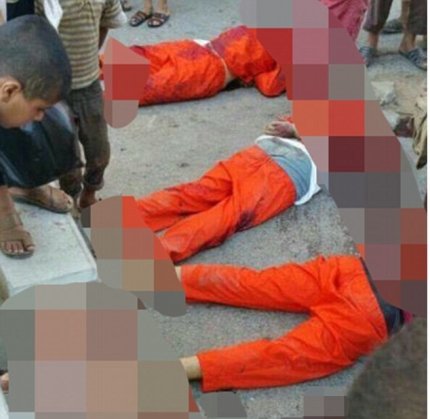 Ужасные картины казни, на которых запечатлены осматривающие тела жертв дети, появились в Twitter исламистов. Также были обнародованы фото футболистов в форме своей команды. Кроме футболистов был казнен еще один мужчина, которого пока не идентифицировали.