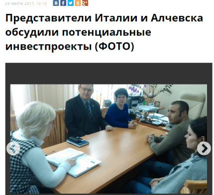 Как пример журналист привел новость с сепаратистского сайта «ЛугансИнформЦентр» под названием "Представители Италии и Алчевска обсудили потенциальные инвестпроекты".