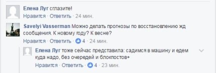 Так, луганский блогер Савелий Вассерман на своей странице в Facebook написал: "Предательство! Нож в спину нашей "республике"! Кто посмел? Спросили народ? Мы на референдум ходили за что? Герои положили столько ребят... Положили, чтобы теперь открыть путь карателям? Уже сейчас, говорят, автобусы 10 шт. стоят на изготовке с правым сектором - это те самые, которые ехали в апреле в Луганск. Стояли они два года и теперь приедут всех нас вырезать. Кто этот предатель кто отдал команду снимать посты? Надо срочно блокировать движение народной милиции, чтобы она никуда не уходила. Выводите людей! Хунта, каратели, Донбасс, геноцид".