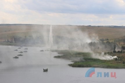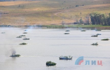 Отмечается, что в учениях было задействовано более 100 единиц техники, а также плавучие понтоны. Кроме того, мероприятие посетил главарь боевиков ЛНР Игорь Плотницкий.