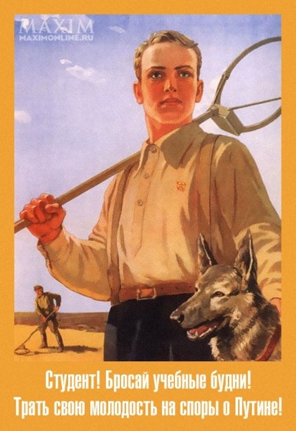 Среди наиболее ярких: «Патриот! Ты в тайге добываешь газ, а в Facebook «укропы» ругают Донбасс!», «Строитель! Пока ты трудишься в каске, кто-то репостит ложь о Луганске» и «Студент! Бросай учебные будни! Трать свою молодость на споры о Путине!».