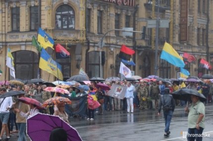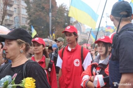 Как сообщает Громадське ТВ, среди участников шествия много людей в военной форме, многие из них - со следами ранений. Участники шествия скандируют: «Слава Украине! Героям слава!». Активисты планируют почтить память погибших во времена Евромайдан и в зоне военных действий на Донбассе.