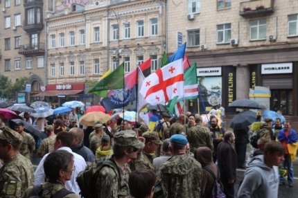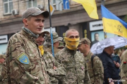 Бойцы добровольческих батальонов в День независимости Украины вышли на отдельный марш в Киеве.