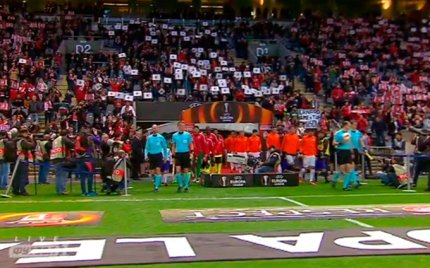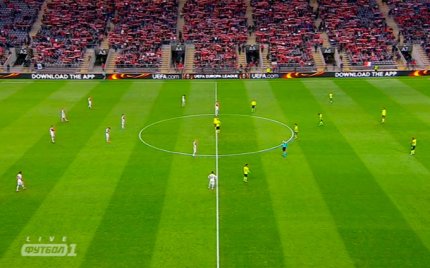 22:02. выходят футболисты на поле. Слушаем гимн Лиги Европы