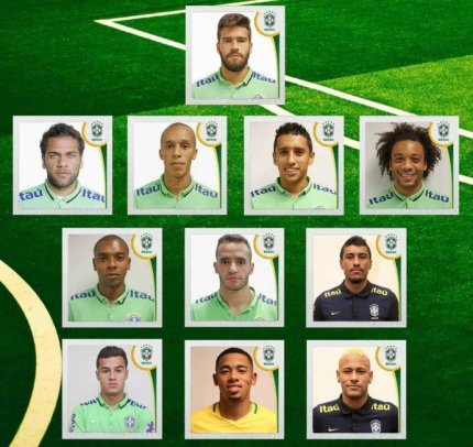 Бразилия: 1. Алисон Бекер - 4. Дани Алвес, 16. Марсело, 13. Маркиньос, 3. Жоао Миранда (14. Тьяго Силва, 87') - 5. Фернандиньо, 15. Паулиньо, 8. Ренато Аугусто, 11. Филипп Коутиньо (7. Дуглас Коста, 85'), 9. Габриэл Жезус (21. Роберто Фирмино, 82'), 10. Неймар