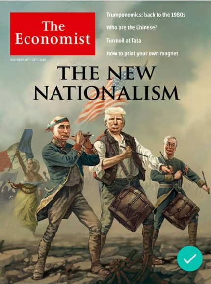Стоит отметить, что на обложке, кроме Трампа и Путина, изображены также один из идеологов референдума о выходе Великобритании из Евросоюза, лидер Партии независимости Соединенного Королевства Найджел Фараж.