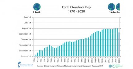 Человечество полностью исчерпало запас природных ресурсов на 2020 года, в связи с чем уже с 23 августа живет в экологический долг. Именно сегодня наступил День экологического долга, когда количество использованных человеком ресурсов - вода, чистый воздух, почва - с начала года превышает тот объем, который Земля способна воспроизвести за 365 дней. Важно отметить, что в 2020 году природные ресурсы планеты закончились почти на месяц позже по сравнению с прошлым годом. Природе удалось дольше продержаться от человеческой деятельности благодаря пандемии коронавируса - на 14,5% уменьшились выбросы углерода, на 8,4% сократились лесозаготовки. Теперь же до конца года человечество будет только увеличивать экологический дефицит, который наблюдается уже более полувека. Об этом говорится в ежегодном отчете международной организации Global Footprint Network, передает ONLINE.UA.