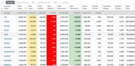 Количество больных коронавирусом в Европе 29 октября (фото – скриншот worldometers.info)