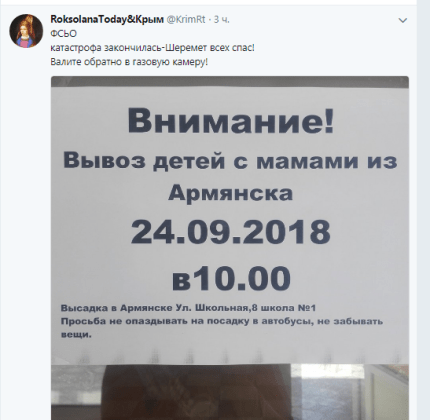 Очевидцы разместили в соцсетях кадры, на которых запечатлены объявления оккупантов, наметивших возвращение детей в Армянск на 24 и 25 сентября.