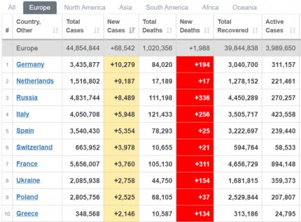 Количество больных коронавирусом в Европе 4 мая (фото — скріншот worldometers.info)