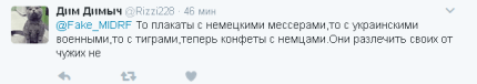 "Житель Воронежа получил ко Дню защитника отечества вкусный подарок: конфеты птичье молоко в "тематической" по случаю праздника упаковке. На коробке со сладостями был изображён офицер в военной форме времён Великой Отечественной и подпись: "С таким защитником как ты можно спать спокойно", - написал украинский блогер Антон Комаров в своем Facebook
