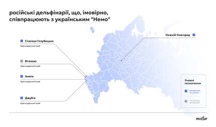 Аналитики OSINT-агентства Molfar в сотрудничестве с организацией по спасению животных и окружающей среды UAnimals обнаружили, что украинская сеть дельфинариев «Немо», вероятно, имеет филиалы в РФ и в оккупированном Крыму и курируется эксдепутатами из российской провластной партии «Единая Россия».