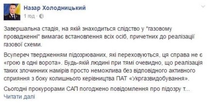 "К сожалению расторжение указанных договоров стало работой уже нового руководства ОАО «Укргаздобыча» и Специализированной антикоррупционной прокуратуры, в результате чего ликвидировали правовую основу преступной деятельности - заведомо убыточные договоры о совместной деятельности", - отметил Холодницкий.
