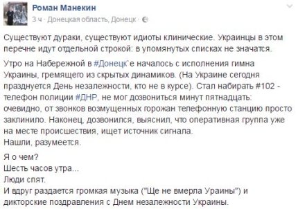 13.16- Смелые жители оккупированного Донецка поздравили Украину с Днем независимости, чем вызвали гнев у боевиков ДНР. Вот так вот брызжет слюной в соцсетях известный донецкий сепаратист: