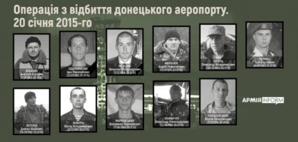 Информагенство Минобороны Украины января опубликовало фото погибших в боях за Донецкий аэропорт украинских военных.э Также сообщается, что Национальный военно-исторический музей Украины, исследовав ряд источников служебного характера и сведения из открытых источников, обнародовал окончательные цифры и хронику боевых потерь. Защищая Донецкий аэропорт, погибли 100 украинских военных, более 300 получили ранения.