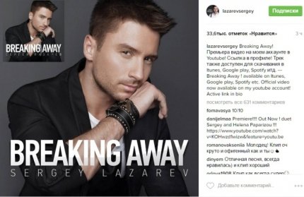"Breaking Away! Премьера видео на моем аккаунте на Youtube! Ссылка в профиле!" — написал Лазарев.